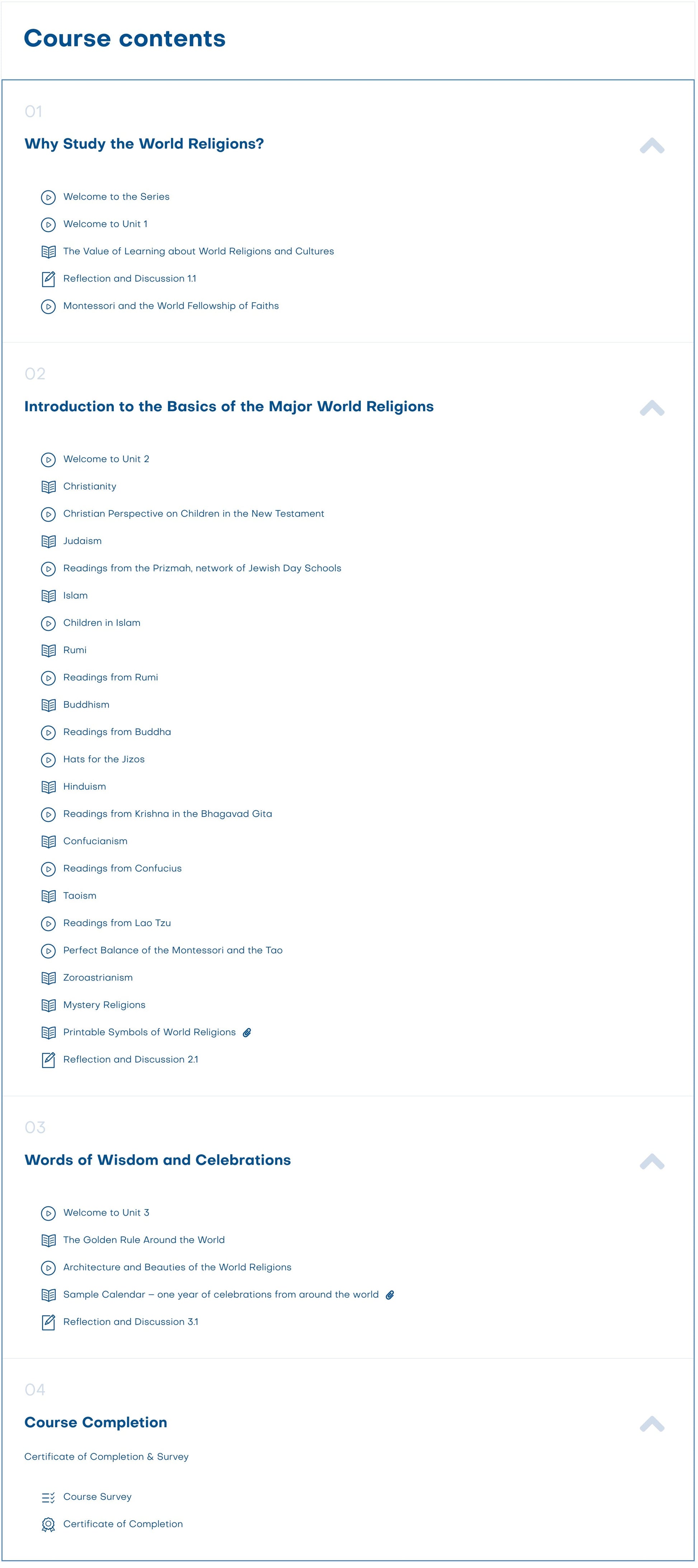 Discover how to meet the spiritual needs of your children with this inspiring series of four 12-hour multimedia courses. Learn what Maria Montessori had to say about the spiritual nature of the child and explore a never-before seen chart of the spiritual stages of development. Nurture your child's spiritual growth and provide them with the guidance they need to truly thrive!